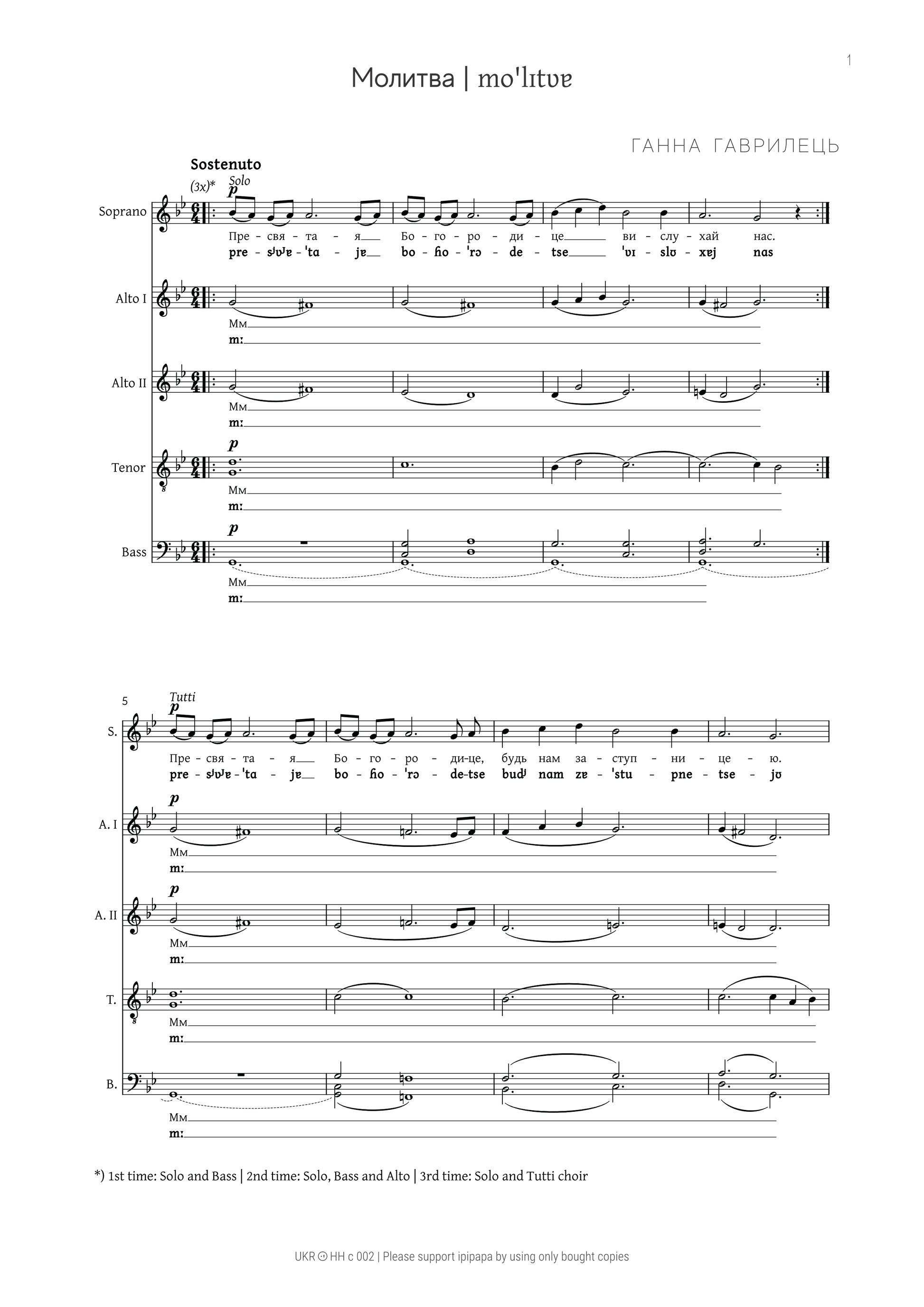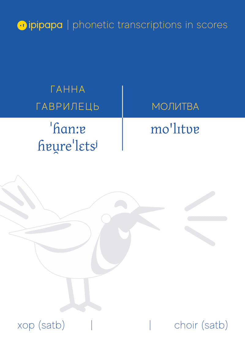 Discover with us the unique opportunity to experience the music of Hanna Hawrylez, an award-winning Ukrainian composer and deserving artist of Ukraine, with phonetic transcription — IPA. Learn more about her famous choral works, including Prayer to the Virgin Mary, in which she uses her typical Ukrainian tonal language and which she herself describes as "the only stimulus for her creativity". Our sheet music is perfect for singers and choirs who wish to improve their skills in a foreign language or their mother tongue. In 1999, she was awarded the Taras Shevchenko Prize, Ukraine's highest prize for art and culture. Our sheet music provides singers with a phonetic transcription directly in the sheet music, perfect for singing in a foreign language or perfecting your own singing.